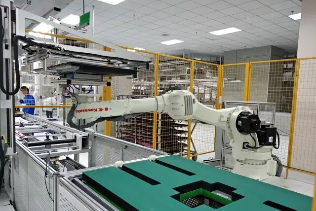 冠捷科技咸阳厂于2017年4月18日落地施工,2018年4月9日正式开工,主要采用CEC•咸阳8.6代液晶面板生产线项目生产的50寸以上面板,进行电视终端机生产,总投资近1亿美元。作为冠捷科技自动化程度最高的智能制造工厂,咸阳厂电视组装车间面积约为1.1万平米,总规划可容纳4条电视整机组装线和2条模组组装线,通过数据采集和监视控制系统对所有设备进行全时数据采集和监控,同步进行大数据分析,同时配备全套自动电视组装工艺。