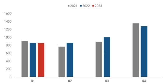 ▲ 2021-2023 年中国电视市场品牌季度出货量变化,来源洛图科技(RUNTO),单位:万台