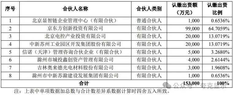 近日,京东方创投收到《关于显智链二期基金后续募集情况的通知函》,显智链二期基金的后续募集期已结束,认缴的出资总额为15.3亿元,具体情况如下: