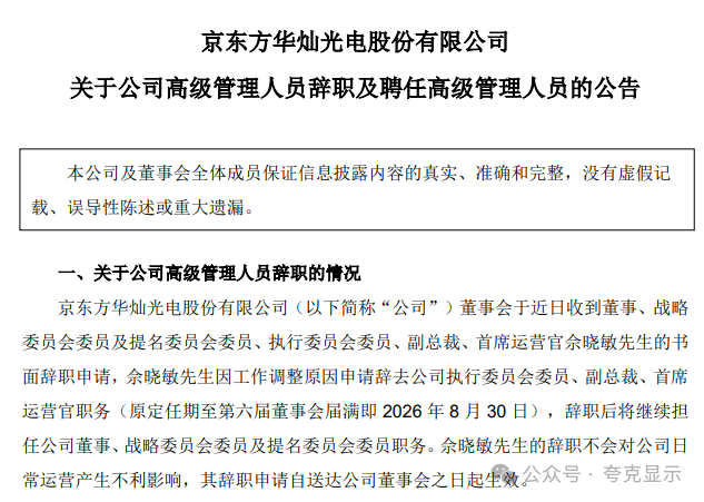 华灿光电7月23日晚间公告,公司董事会近日收到公司执行委员会委员、副总裁、首席运营官COO佘晓敏的书面辞职申请,佘晓敏因工作调整原因申请辞去公司执行委员会委员、副总裁、首席运营官职务,辞职后将继续担任公司董事等职务,辞职申请自送达公司董事会之日起生效。