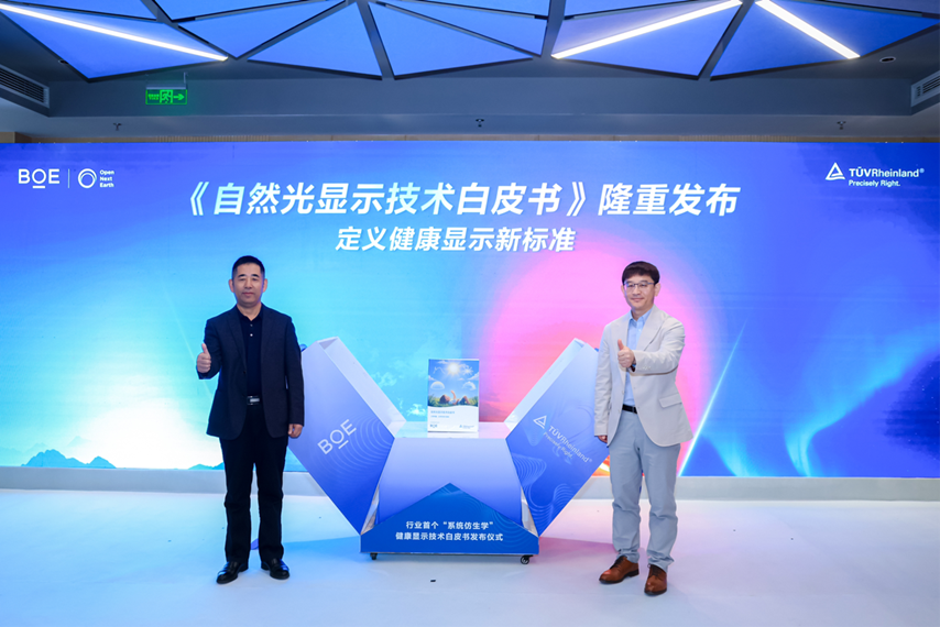 本次活动的核心环节是BOE(京东方)与TÜV莱茵联合发布《自然光显示技术白皮书》。该白皮书基于最新的视觉健康研究和自然光特性在显示产业的应用实践,将自然光对人体身心健康的有益特性进行详细分解,并对现有的科学实践和理论研究对自然光有益特性的支持证据进行了分级,为未来建立科学有序的自然光技术评价体系提供了依据。TÜV莱茵大中华区电子电气产品服务区域总经理、全球显示技术总监刘喜强表示:“这份白皮书的发布代表着我们对于未来显示设备如何才能确保人类的长期视觉健康与发展的重新审视,相信将会有越来越多的产品应用自然光技术,为广大消费者带来更健康和舒适的体验。”