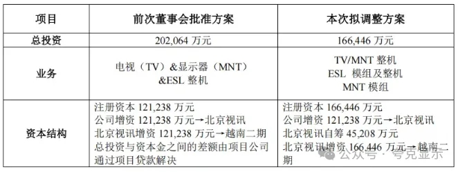 3月31日,京东方A公告称,公司拟对越南整机二期项目方案进行调整。由于国际政策及市场环境变化,为优化效益、控制风险,公司将项目总投资由原20.21亿元调减至16.64亿元;业务规划调整为聚焦TV/MNT整机及ESL模组及整机,并同步优化资本结构。