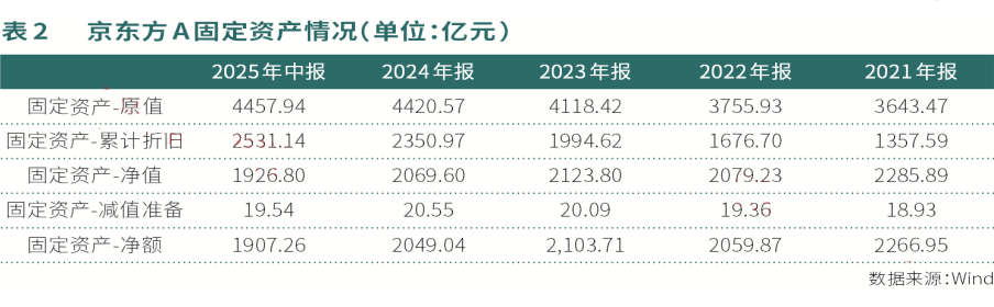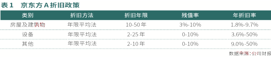 据京东方A 2025年半年报,其折旧政策采用年限平均法(见表1)。
