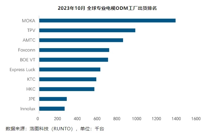 注:电视ODM排名不包含长虹、康佳、创维、海信四家自有工厂