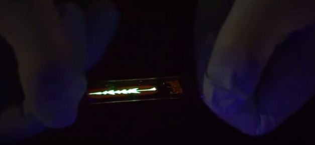 斯坦福大学张智涛展示了该材料的弹性,可伸展至2倍长而不会损坏撕裂。(00:07)在斯坦福大学发布的新闻稿中,张智涛说,“如果加入聚氨酯,我们会看到SY形成纳米结构。”他进一步称,“这些纳米结构非常重要。它们使脆性聚合物可伸缩,并使聚合物发出更亮的光,因为纳米结构像鱼网一样连接在一起。”