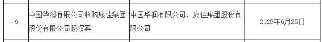 7月3日,市场监管总局发布2025年6月23日—6月29日无条件批准经营者集中案件列表,其中包括中国华润有限公司收购康佳集团股份有限公司股权案。