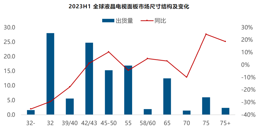 上半年75寸及75寸以上的大尺寸出货显著增长。由此可见,超大板趋势是面板和电视整机行业笃定的方向。