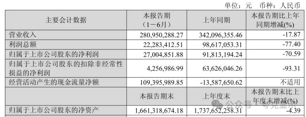 2025年上半年,奥来德实现营业收入2.81亿元,同比下降17.87%,其中材料业务收入2.57亿元,同比增长21.99%;蒸发源设备收入2335.28万元,同比下降82.20%。2025年上半年,奥来德归属于上市公司股东的净利润2700.49万元,同比下降70.59%,归属于上市公司股东的扣除非经常性损益的净利润425.7万元,同比下降93.31%,主要原因为报告期内蒸发源设备业务收入同比下降82.20%所致。