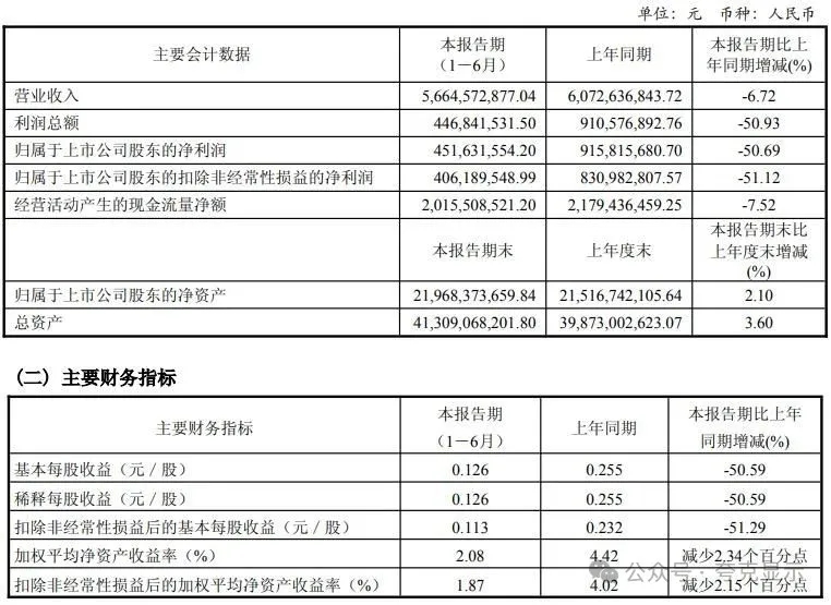 其中第二季度,公司营业收入为27.0亿元,同比下降14.6%;归母净利润为1.29亿元,同比下降79.7%;扣非归母净利润为9994万元,同比下降82.8%;EPS为0.036元。