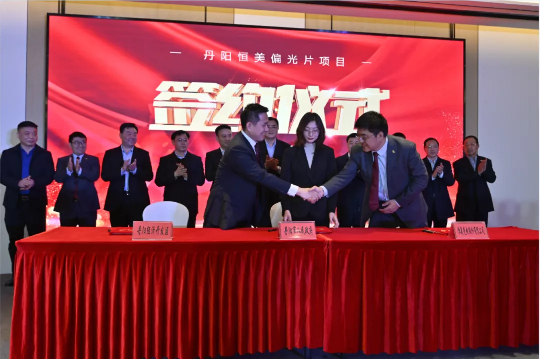 2022年1月26日,恒美光电股份有限公司(以下简称“恒美光电”)与丹阳市人民政府及丹阳经济开发区管委会在江苏丹阳隆重举行“偏光片项目签约仪式”。丹阳市委书记黄春年、市长王成明,人大常委会主任赵立群、政协主席薛军民、市委副书记赵志强、市委常委束克之、副市长谢正宝、副市长任翠霞、副市长陆云飞、昊盛集团董事长陈融圣、金本控股董事长宗福林、恒美光电董事长黄源、总经理严兵华等出席本次签约仪式,丹阳市委市政府、国资平台以及恒美光电其他主要领导列席了签约仪式。
