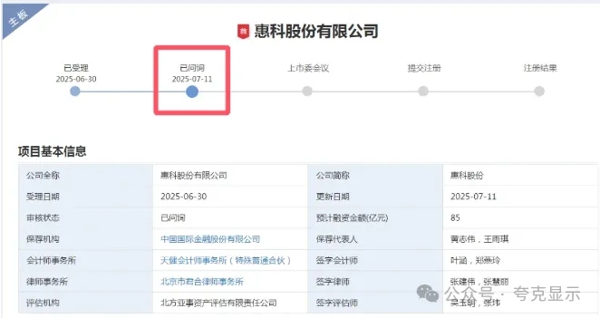 值得关注的是,惠科股份曾于2022年首次申请创业板IPO,2023年8月撤回IPO。2024年,惠科股份宣布重启上市辅导,2025年6月30日主板IPO获得受理,2025年7月3日IPO被抽中现场检查。