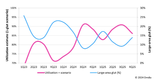 此外,更大的面板尺寸加上7%的市场需求回升,将支持2024年平均工厂利用率保持在82%以上。利用供需分析情景,对利用率进行建模,预计利用率将每年逐步增长,到2026年将接近89%。”
