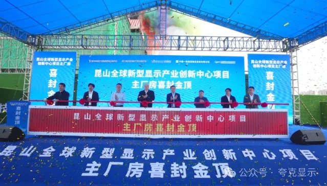 4月28日,昆山全球新型显示产业创新中心项目主厂房封顶仪式顺利召开,维信诺董事长、总裁张德强博士,苏州国显创新总经理朱修剑博士及中建一局建发公司、昆山恒昌等建设相关方领导出席并见证仪式。