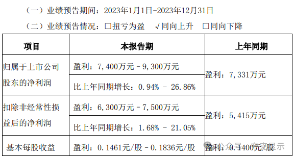三利谱(SZ 002876)1月30日晚间发布业绩预告,预计2023年归属于上市公司股东的净利润4100万元~5200万元,同比下降74.83%~80.15%;基本每股收益0.24元~0.3元。
