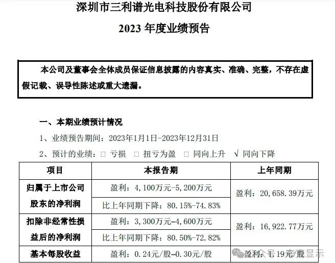 1、三利谱聚焦偏光片业务发展,积极推进产品研发、优化生产工艺、提升产品品质,扩大市场份额,本年销售面积高于去年同期,但受消费电子需求不足和行业竞争加剧的影响,三利谱产品销售单价出现了一定幅度的下滑,造成毛利率和净利润同比下降。未来,三利谱将会持续推进产品创新、优化产品结构、提升产品品质和生产良率、降低生产成本,提高产品竞争力和盈利能力。