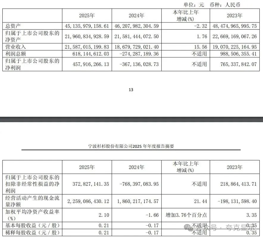 4月29日晚间,杉杉股份发布2025年年度报告及2026年第一季度报告。