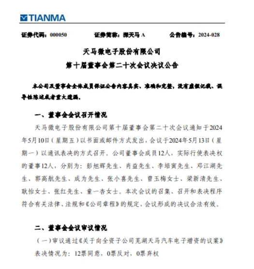 5月13日丨深天马A(000050.SZ)公布,为更好地落实公司发展战略,董事会同意公司向全资子公司芜湖天马汽车电子有限公司增资47,000万元人民币,用于投建汽车电子复杂模组生产线项目。