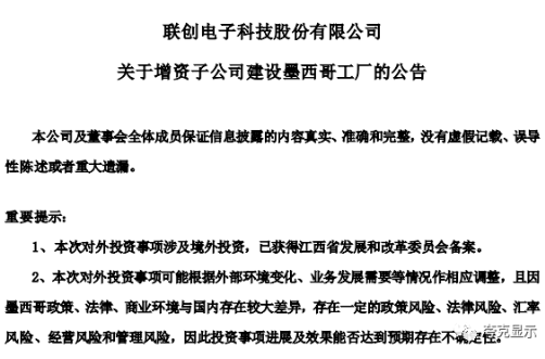 联创电子(002036)7月25日晚间公告,公司为积极快速开发北美地区北美光学和影像市场,全资子公司江西联创电子有限公司拟以自有资金对其全资子公司联创光学(美国)有限公司(简称“美国子公司”)增资不超过1090万美元,以美国子公司为主体与墨西哥当地合作单位Prodensa公司签订合作协议,投资总额不超过1090万美元建设墨西哥工厂。