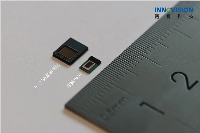 据介绍,芯眸®M06基于诺视科技自主研发的WLVSP®像素堆叠技术打造,像素尺寸2.5μm,分辨率540×280,像素密度高达10000 PPI,模组尺寸仅为上一代0.13英寸微显示模组的35%,产品微型化能力进一步提升。配套光引擎芯眸®M06E体积小至0.03cc,重量仅0.08g,相较上一代0.15cc光引擎,体积大幅缩减,为AR眼镜设计释放出更多空间,更好满足日常轻量化穿戴需求。