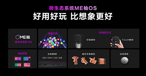 其中,ME柚系统升级了多任务管理、多窗口拼接的能力。多窗口的视频源支持app应用、手机、电脑的投屏。排布方式也有1:1拼接、大屏拼小屏、横屏拼竖屏、画中画等多种选择,在能实现多窗口播放的前提下,努力保证多任务的流畅性。过去的电视只能保证单任务画面流畅,而ME柚OS在全系统的流畅性上做了大量优化,例如,用户可以在观看视频时接听来电,在不同的场景切换与组合下,在应用的跳转逻辑、在动画的衔接上也保持了一贯的高水平表现,为客厅注入新鲜活力。