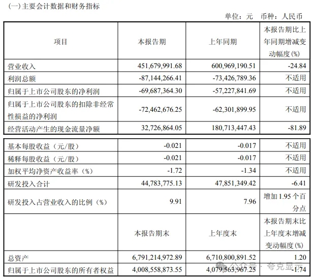 龙腾光电发布2026年一季报。报告期内,公司实现营业收入4.52亿元,同比下降24.84%;归属于上市公司股东的净亏损6968.74万元;扣非净利润亏损7246.27万元,上年同期亏损6230.19万元;经营活动产生的现金流量净额为3272.69万元,同比下降81.89%。