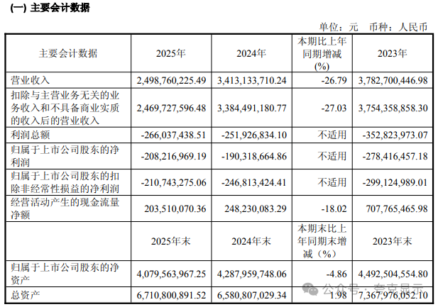 4月22日,龙腾光电公布2025年年报,公司营业收入为25.0亿元,同比下降26.8%;归母净利润自去年同期亏损1.9亿元变为亏损2.08亿元,亏损额进一步扩大;扣非归母净利润自去年同期亏损2.47亿元变为亏损2.11亿元,亏损额有所减少;经营现金流净额为2.04亿元,同比下降18.0%。