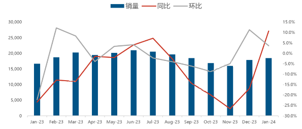 根据洛图科技(RUNTO)发布的《全球电视面板市场出货月度追踪》,2024年1月,全球大尺寸液晶电视面板出货量为18.5M片,同比增长10.7%,增幅是近13个月以来最高点,环比增长3.6%;出货面积为13.6M平方米,同比增长24.4%,环比基本持平。