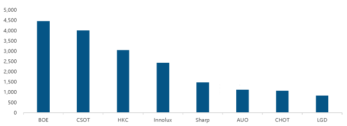--HKC(惠科)1月出货量约300万片,同比下降2.8%,环比增长7.8%。在超大尺寸85英寸上,出货量已连续7个月排名第一,当月市占率达到36.3%,领先第二的AUO(友达)12.4个百分点;同时,100英寸的出货与BOE保持并列水平。