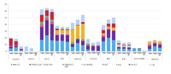 乐金显示在 2023 年的液晶面板电视供应将非常有限,面板备货将优先供给三星和 LG 电子。乐金显示与三星之间的长期供应协议可能无法完全实现,因此三星在 2023 年必须寻求其他供应商以获取后备供应。它的首选供应商是中国台湾和日本供应商。三星的中国战略面板供应商(如华星光电和惠科)近年来大幅增加了面板备货。