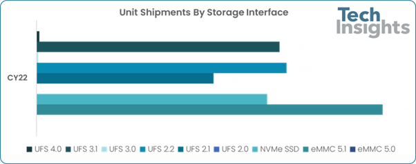 在NAND出货量方面,UFS 2.2 和 UFS 3.1 的份额有所增加,同时UFS 4.0 NAND 产品的采用较晚。由于智能手机批量市场的需求疲软,MCP产品的出货量下降。然而,高端和旗舰客户产品的季节性势头推动了对高密度离散 NAND 产品的需求。