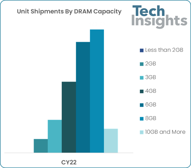 DRAM bit 出货量同比下降超过10%。但是,8GB DRAM 的出货量份额超过了30%。
