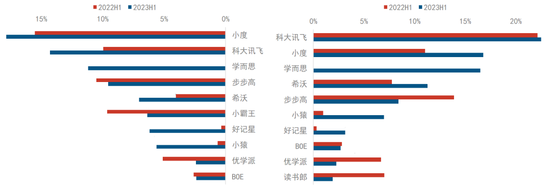 2023H1 中国学习平板线上品牌销量和销额结构