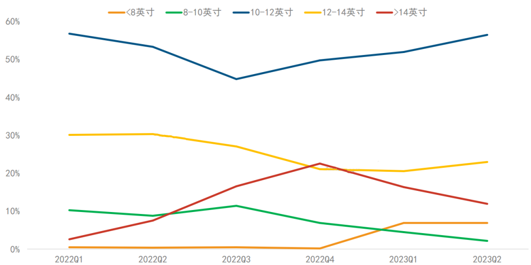 2022-2023Q2 中国学习平板线上市场尺寸销量结构
