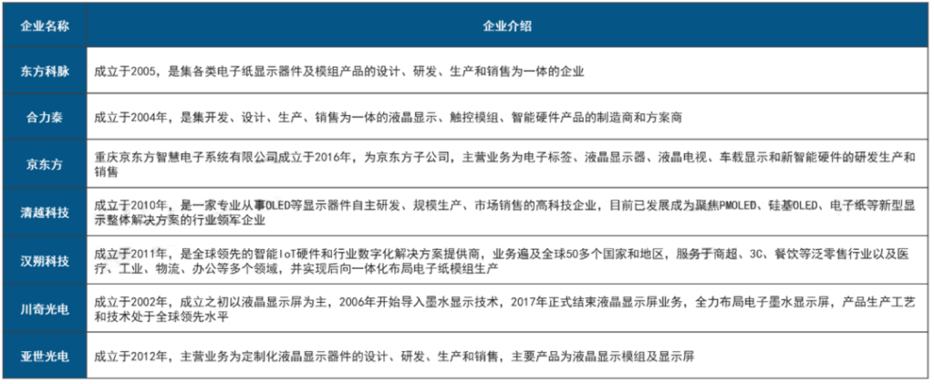 全球电子纸模组主要厂商