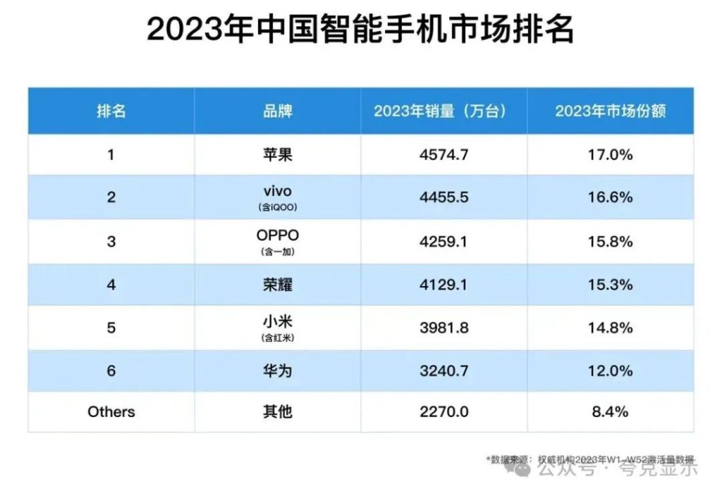 1月24日,根据权威机构数据显示,苹果以4574.7万台智能手机激活量位居2023年中国市场第一,紧随其后的是vivo,以4455.5万台稳居国产第一。