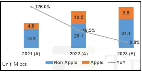 图二、2021~2023年电竞监视器出货量(单位:百万台) 资料来源:TrendForce