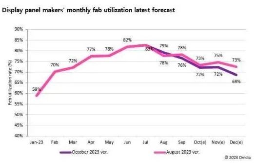 11月23日消息,据市场调研机构Omdia最新统计,由于需求放缓和面板厂商对液晶面板价格的保护力度减弱,预计2023年第四季度整体的面板产线稼动率将降至70%以下。