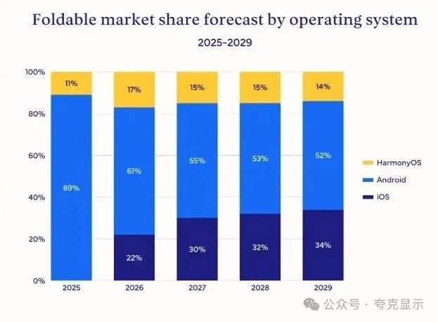 IDC全球季度手机追踪公司高级研究总监Nabila Popal表示:“明年将是令人兴奋的一年,将有多款可折叠手机推出,推动市场年增长率从之前预测的6%上升到30%。三星将以Galaxy Z Trifold作为2026年的开始,延续2025年Galaxy Z Fold7成功的势头,向全球主流消费者推出三倍创新。搭载HarmonyOS Next的华为可折叠手机也将出现强劲增长,预计到2026年出货量将增长近一倍。但真正改变游戏规则的是苹果在年底进入可折叠领域,预计第一年将占据22%以上的市场份额和惊人的34%的可折叠市场价值,这要归功于预期的平均价格为2400美元。”
