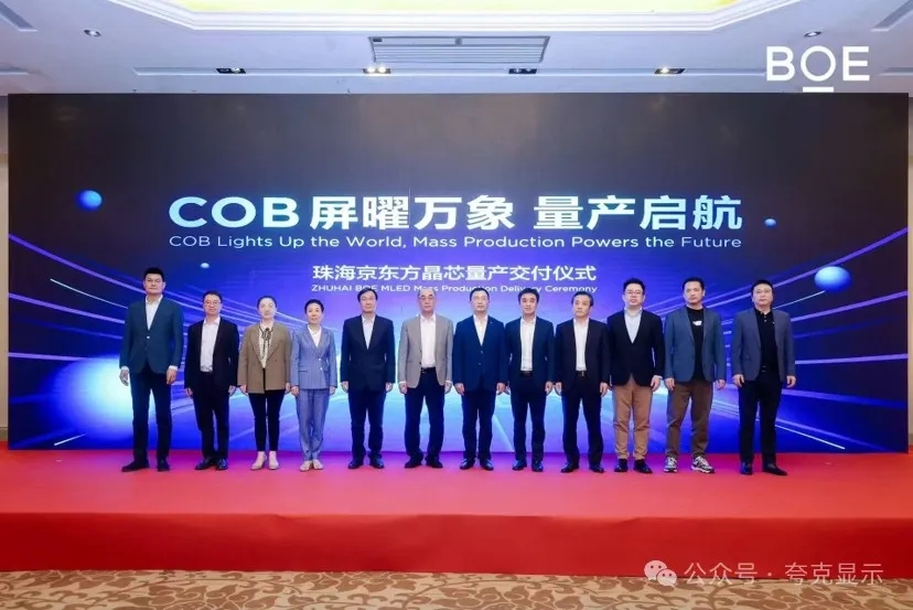 3月10日,BOE(京东方)在珠海京东方晶芯科技有限公司成功举办主题为“屏曜万象 量产启航”的COB量产交付仪式,全球来自美国、欧洲、日韩、东南亚等在内的50余位海外客户齐聚一堂,这一重要时刻标志着BOE(京东方)在MLED显示技术领域取得重要里程碑。