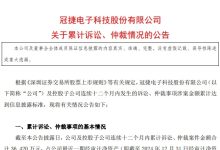 3月10日,冠捷科技(000727)发布公告,截至本公告披露日,公司及控股子公司连续12个月内累计诉讼、仲裁案件金额合计3.64亿元,占公司最近一期经审计净资产的12.23…