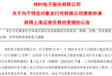 8月8日,伟时电子(605218)发布公开发行可转债获上交所受理公告。据披露,伟时电子本次向不特定对象发行可转换公司债券的募集资金总额不超过5.9亿元,投建于轻量化车载新型…