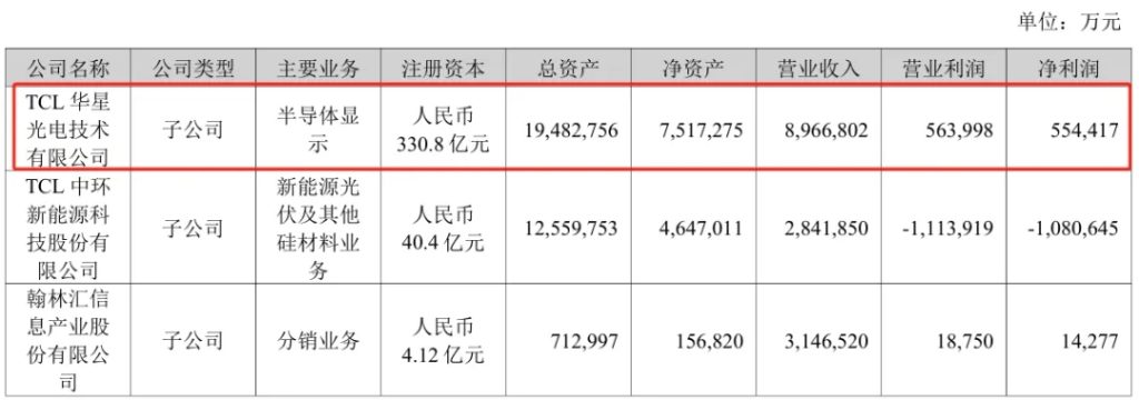 其中,TCL华星全年营收896.68亿元,营业利润56.4亿元,净利润55.44亿元