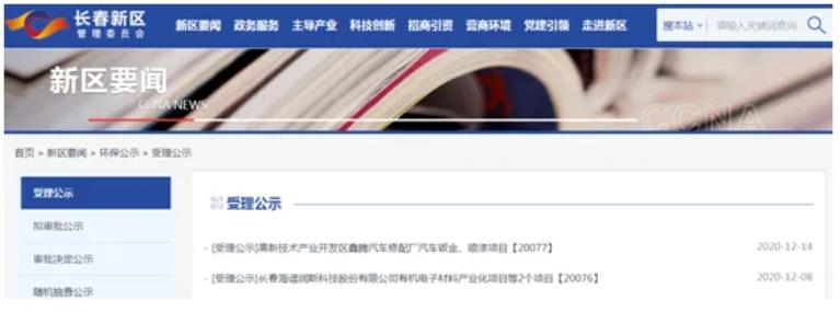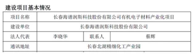 在海谱润斯所在的长春新区管委会网站上,有一份2020年年底发布的环评报告,海谱润斯计划新建有机电子材料产业化项目。项目投资4亿元,预计投产日期是2023年12月。