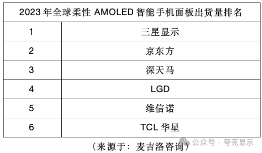 咨询研究总监司马秋预计,2024年中国柔性OLED智能手机面板出货量占比有望首次超过韩国,成为全球最大的智能手机柔性AMOLED生产国。同时,司马秋还指出,随着国产手机厂商持续导入柔性AMOLED智能手机面板,以及苹果增加京东方、LG Display的订单量,2024年除了三星显示之外,其他厂商柔性AMOLED智能手机面板出货将普遍上涨。