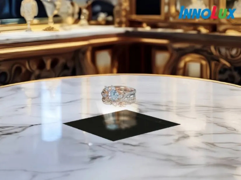 群创展示了浮空影像技术生成的“浮空珠宝盒”。这项浮空影像亮度可达1500尼特以上该方案搭载了非接触式手势感应技术,也能实时辨识手势动作如拿取、旋转虚拟物件。这项技术提供立体逼真、闪耀光泽的珠宝体验效果,可延伸至珍稀品展示、博物馆展览、顶级零售业等多元应用场域。
