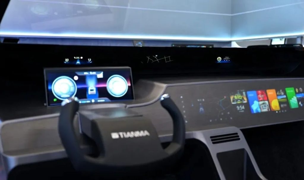 天马此次展示的新一代智慧座舱,将IRIS HUD、3D仪表和InvisiVue隐藏显示技术集成到座舱内,其中IRIS HUD将成像精准投影至挡风玻璃下边缘黑色区域,拥有从A柱到A柱的超宽画幅全景显示能力,让驾驶员抬头即视。